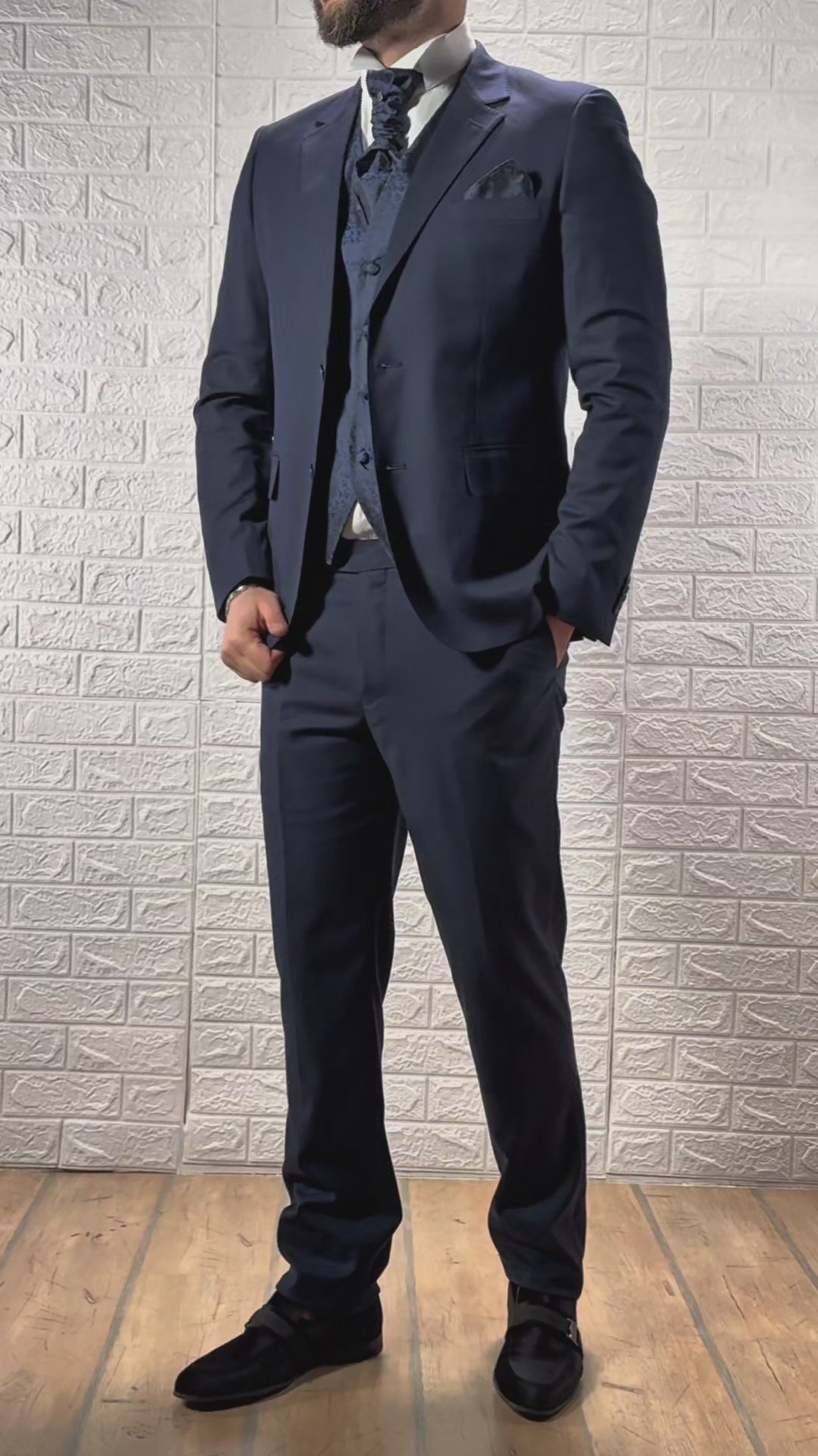 Abito completo elegante con gilet e cravattone art regular blu scuro
