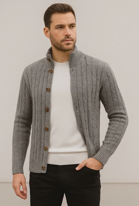 Cardigan con tessuto in trama mouliné con apertura frontale tramite bottoni. Tessuto caldo ed ideale per l inverno. La vestibilità è regular. Per aiutarvi a scegliere al meglio la vostra taglia, il modello in foto e alto 182cm, pesa 82kg ed indossa una taglia L.