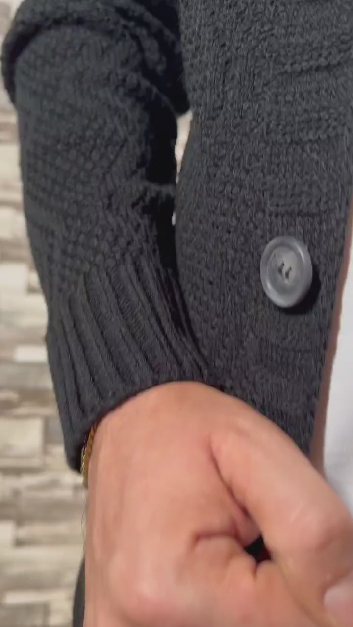 Cardigan modello giacca con cappuccio e abbottonatura centrale. Capo made in italy, con tessuto elasticizzato.