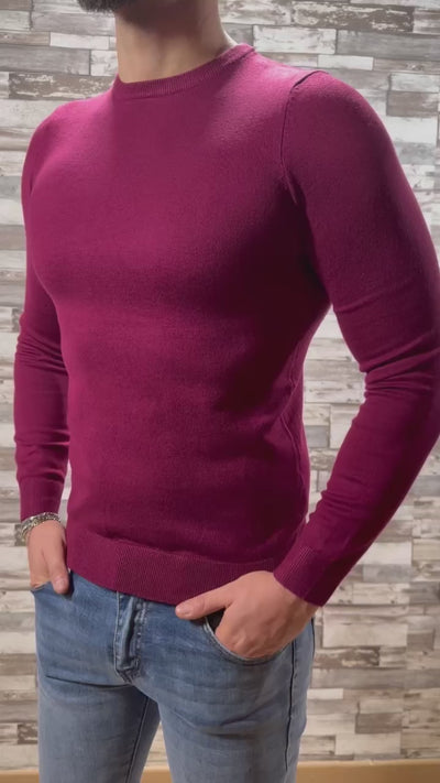Maglia girocollo tinta unita con tessuto elasticizzato. Modello del capo slim.