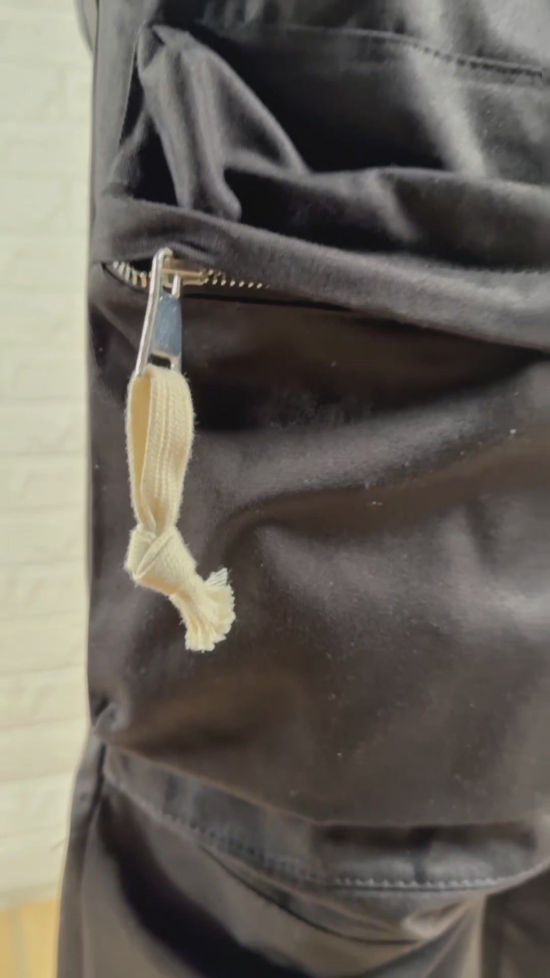 Pantalaccio con tasconi frontali dotati di chiusura con zip. Vestibilità oversize, quindi comoda come da foto. Presente elastico in vita con relativi lacci. Composizione 100% cotone, prodotto made in Italy.
