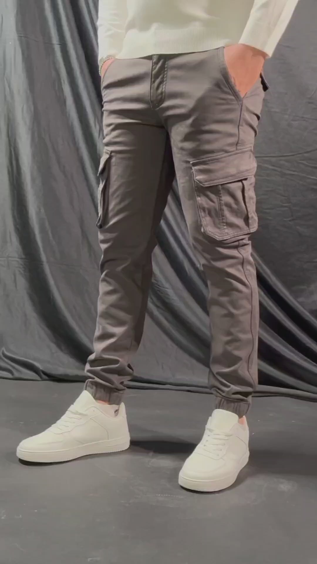 Pantalone cargo con tasche laterali. Sia le tasche laterali che quelle posteriori hanno la chiusura a clip con i bottoni. Vestibilità slim, ed internamente sono felpati con tessuto in pile, ottimi per l inverno. Presenti polsini elastici alle caviglie.